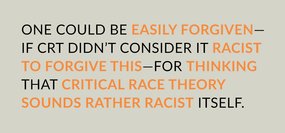 One could be easily forgiven — if CRT didn’t consider it racist to forgive this — for thinking that critical race theory sounds rather racist itself.