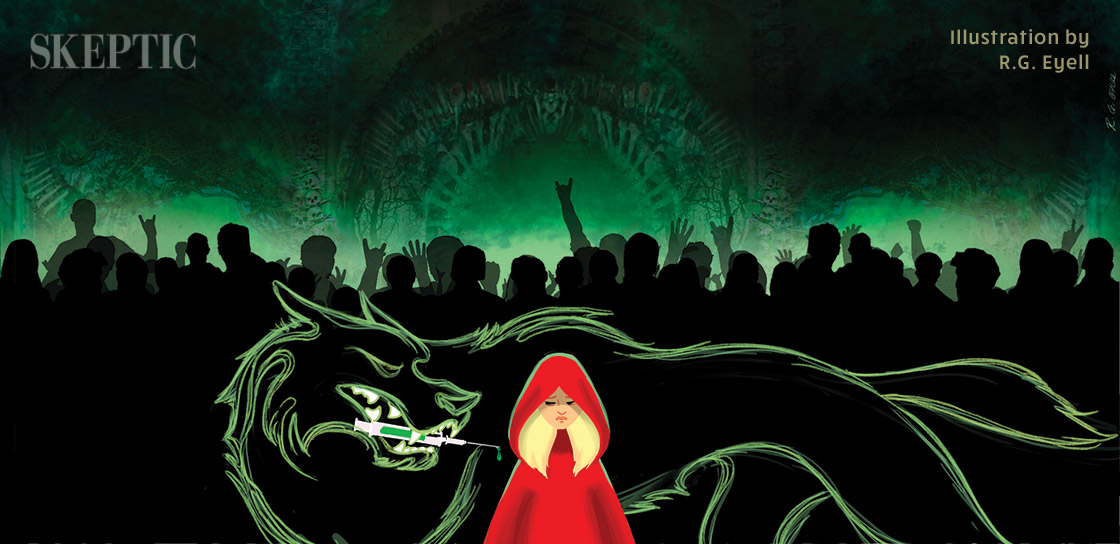 The needle-spiking panic may function as a cautionary tale. Similar panics keep re-emerging throughout history, only the particulars change to reflect current fears. The night club takes the place of the scary forest; the syringe-wielding maniac, the Big Bad Wolf. And we all know what happens to young girls who don’t heed the warnings and stray from the path. ![]()