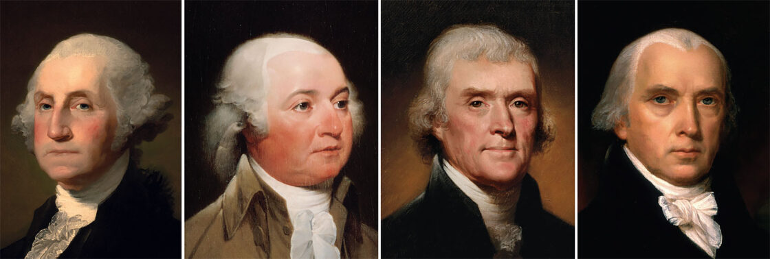 Left to right: James Monroe, John Quincy Adams, Andrew Jackson, and William Henry Harrison