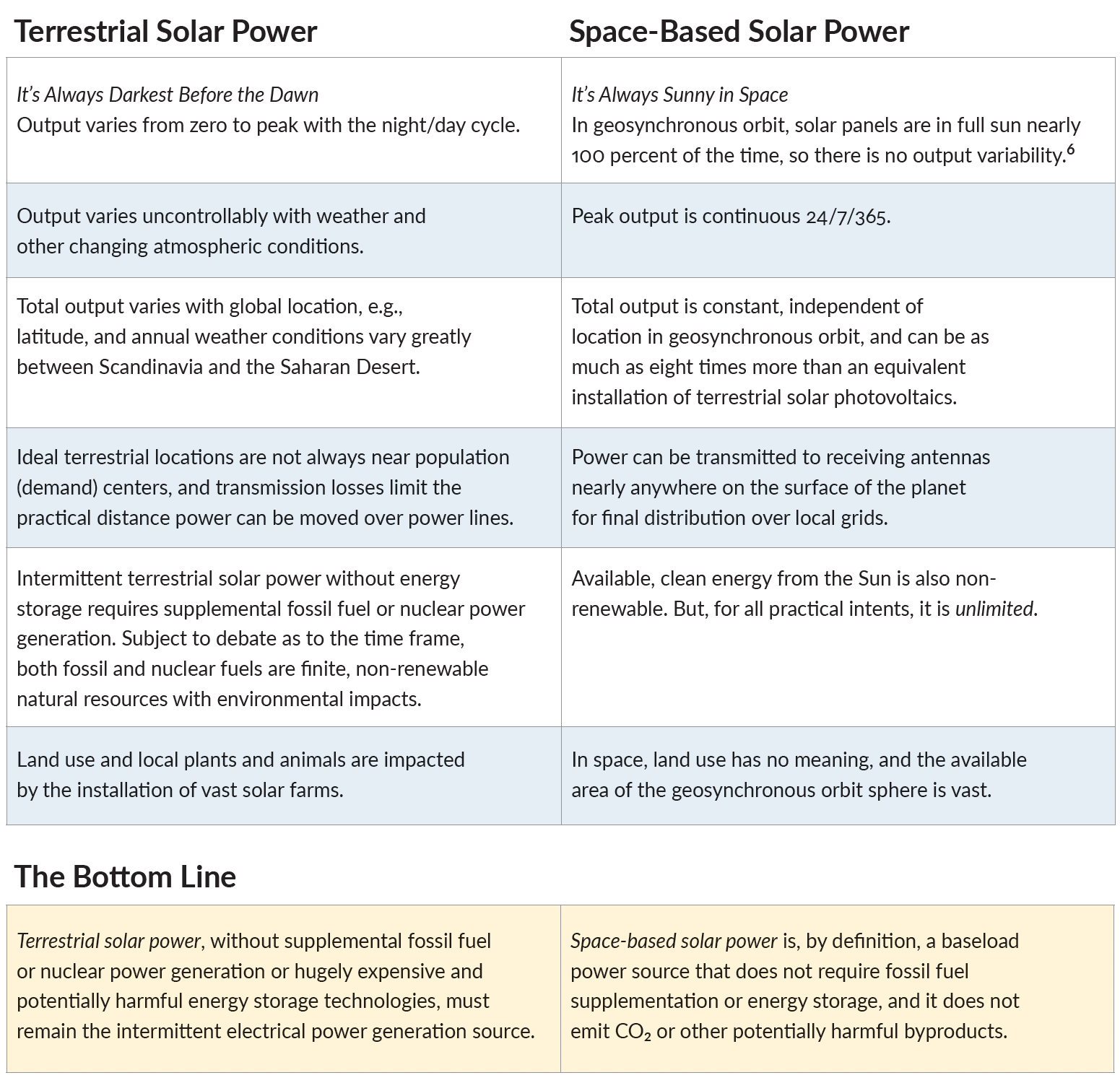 This brings us back to the question: Why not just use enough solar panels on Earth? The answer lies in the differences between terrestrial (Earth-based) solar power and space-based solar power.