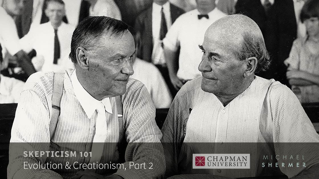 Dr. Michael Shermer continues the discussion of evolution and creationism, focusing on the history of the creationism movement and the four stages it has gone through: (1) Banning the teaching of evolution, (2) Demanding equal time for Genesis and Darwin, (3) Demanding equal time for creation-science and evolution-science, and (4) Intelligent Design theory. Shermer provides the legal, cultural, and political context for how and why creationism evolved over the 150 years since Darwin published On the Origin of Species in 1859, thereby providing a naturalistic account of life, ultimately displacing the creationist supernatural account. Finally, Shermer reviews the best arguments made by creationists and why they’re wrong.